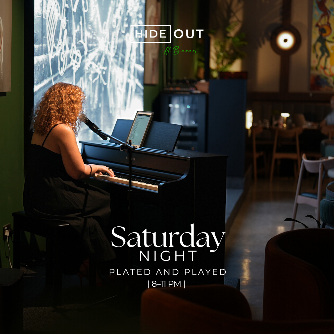 A glass in hand, a song in the air, a plate arriving just when you need it. Every Saturday, Hide Out turns into a living room of melodies and flavors.