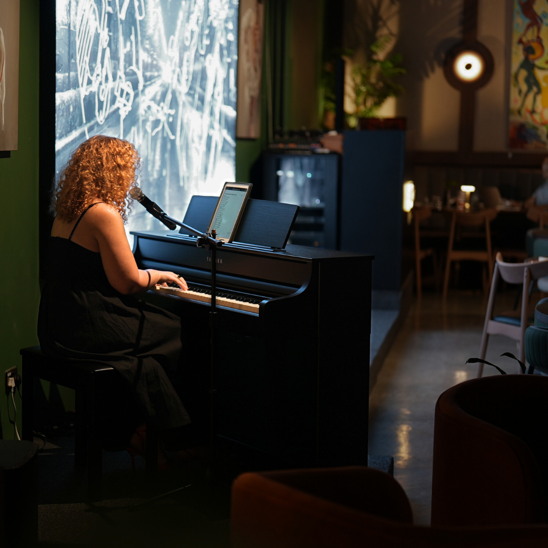 A glass in hand, a song in the air, a plate arriving just when you need it. Every Saturday, Hide Out turns into a living room of melodies and flavors. Gigi at the piano, you at the table. The rest of the world can wait.