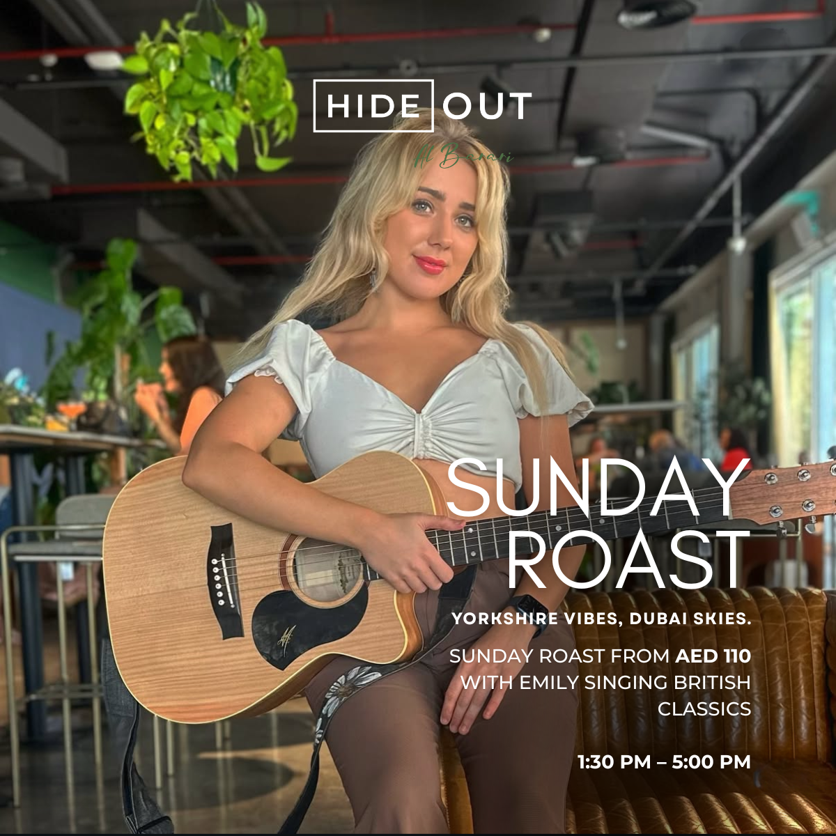 Sundays are for comfort and connection. Gather with friends and family for a hearty roast, flowing drinks, and the warm sound of Emily performing English acoustic classics.